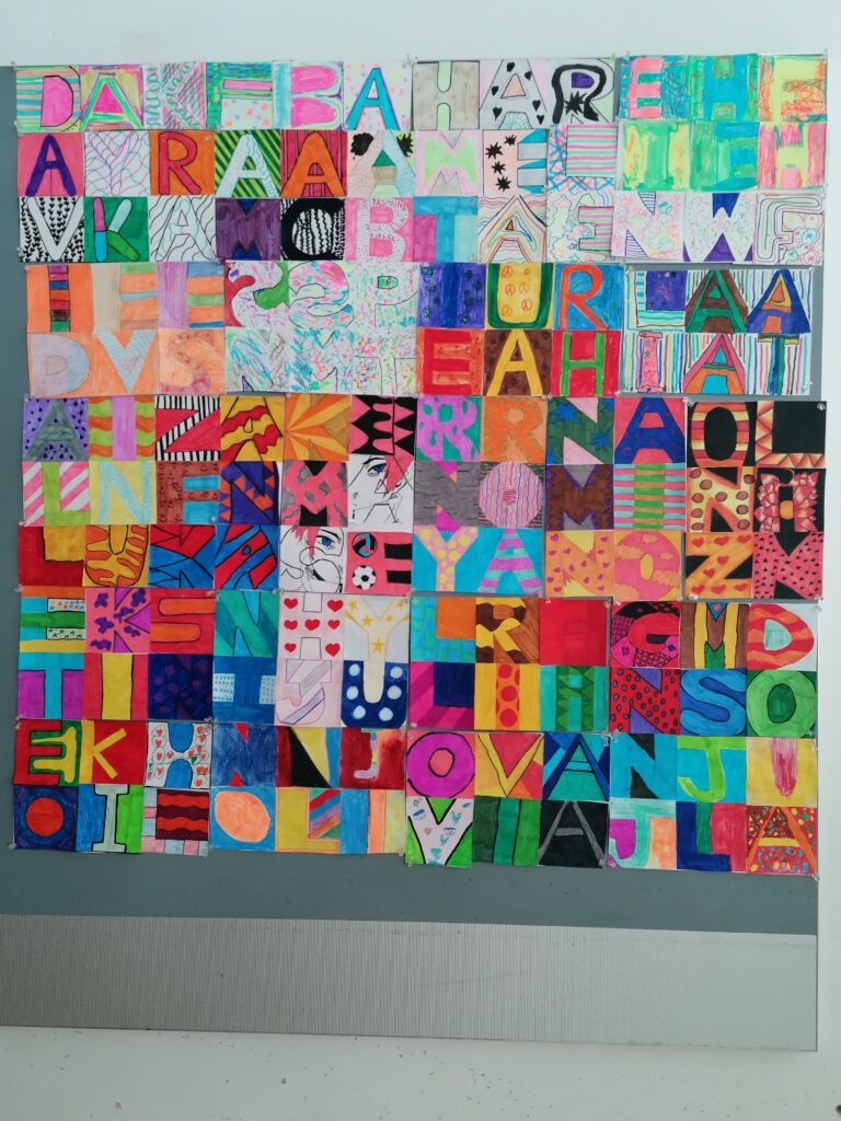 für eine riesige Collage gestaltet, in der alle Namen der Schülerinnen und Schüler