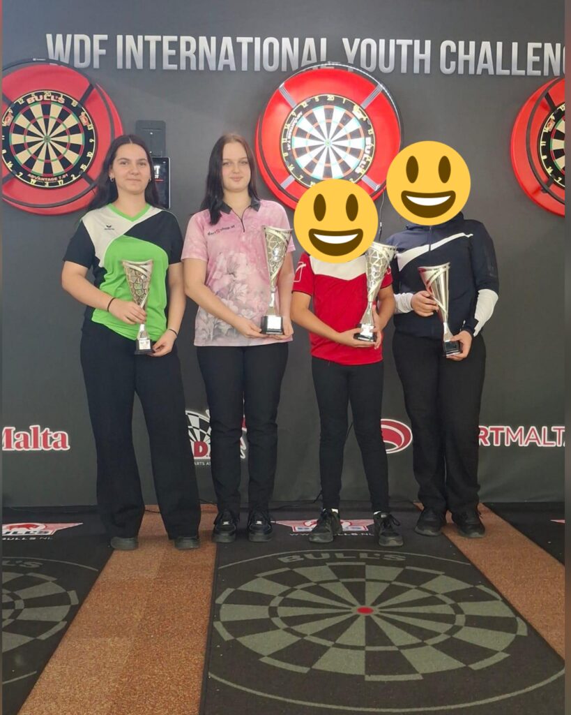 Mit Freude möchten wir auf unserer Homepage die Erfolge zweier Schülerinnen unserer Schule teilen. Celina (zweite von links) gewann letztes Wochenende die WDF INTERNATIONAL YOUTH CHALLENGE in Malta und kletterte dadurch auf Platz 28 in der Weltrangliste hoch, WOW! Tabea (ganz links) holte sich den großartigen 3. Platz. Wir sind sehr stolz auf unsere beiden Schülerinnen und sind überzeugt, dass dies erst der Anfang ihrer steilen Karriere ist, und wir noch viel von ihnen hören werden. GROSSARTIGE LEISTUNG, WEITER SO!!!